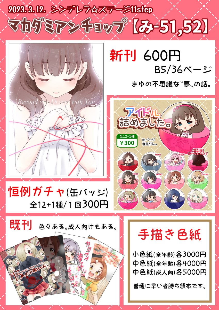 明日のシンステ11お品書きです!!!!!!!!! 新刊サンプル⇒twitter.com/makaami/status… ガチャ(お知らせあり)⇒twitter.com/makaami/status… #シンステ11