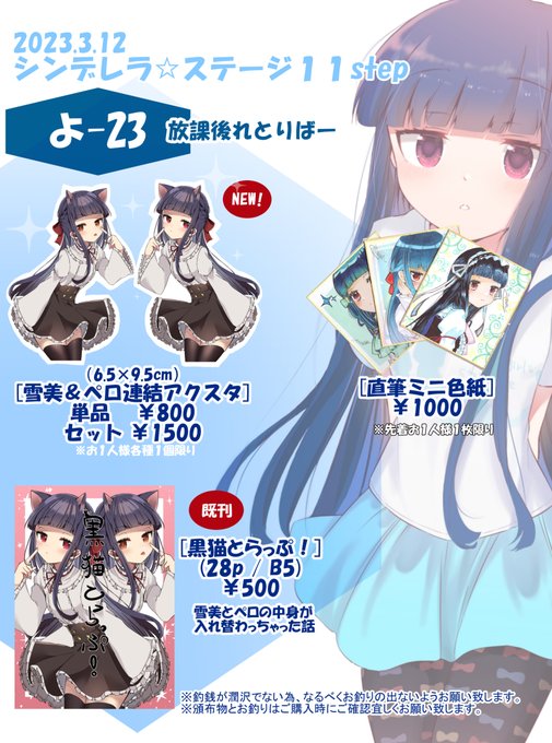3/12開催 #シンステ11 のお品書きです あきみれ中心にグッズたくさん持っていきます🦈😈間に合えば色紙も出る予定です❕ ゐるを(@tokotoko_aspara)ちゃんとの合同サークルで、餅沼(@6KuS)さんのコピー本も委託予定です サークル【くるみゐろ】 スペース【つ-47・48】でお待ちしております #cin_stage