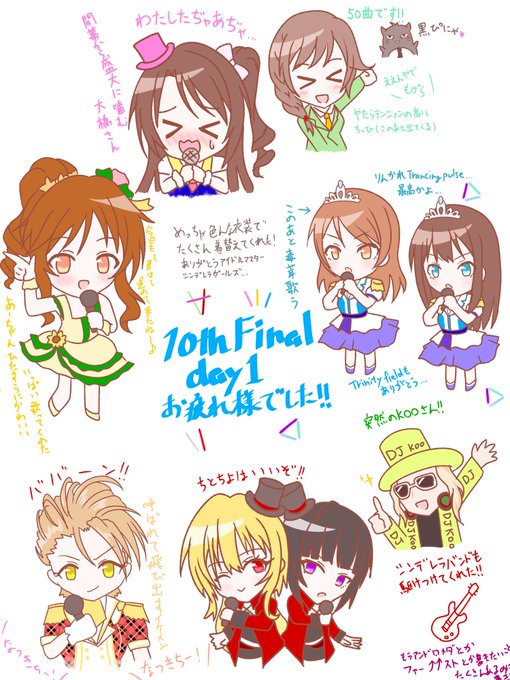 取り急ぎDay1とDay2で描いたやつをまとめました。実際は描ききれないくらいもっと色々ありましたが…() とりあえず最高の経験でした! #シンデレラ10周年_ファイナルday1 #シンデレラ10周年_ファイナルday2
