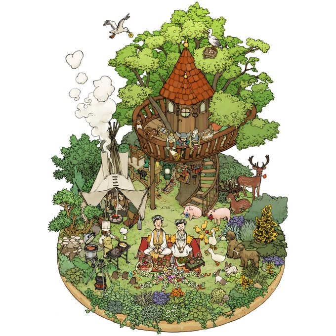 Happy Wedding 友人の為に描いたウェルカムボードです。最初から最後まで幸せな気持ちで描けました。 #イラスト #ウェルカムボード #ツリーハウス #ジオラマ #ヴィネット #ヴィネット #神絵師に埋もれちゃってる絵師です #絵柄が好みって人がいればいいなぁ #誰かに刺さればそれでいい