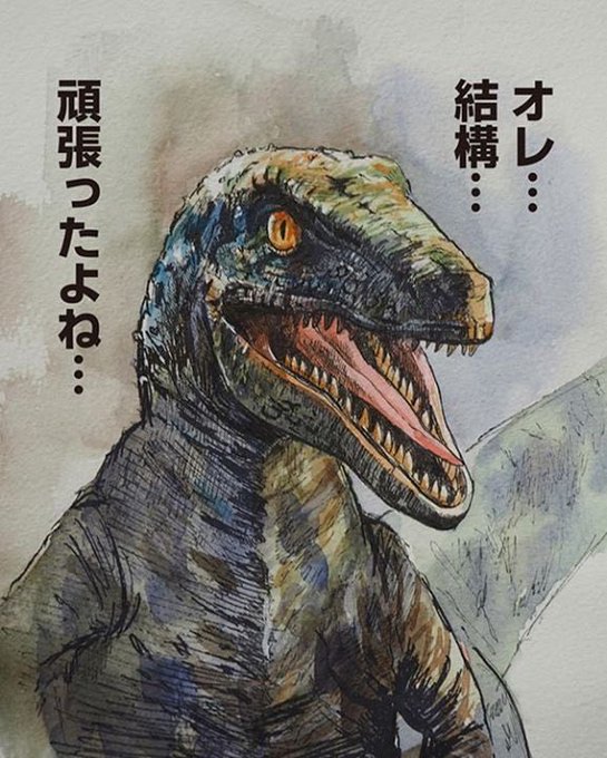 今日は皆様お祝いの言葉を有難う御座いました! 本当に嬉しかったです! そして、この2日間、 誕生日プレゼントとしてジュラワを3回観てきました! 字幕、吹き替え、4DX、 最高でした! ワンコ(同居人)有難う! #サバンナモニター #爬虫類好きと繋がりたい #イラスト #ジュラシックワールド