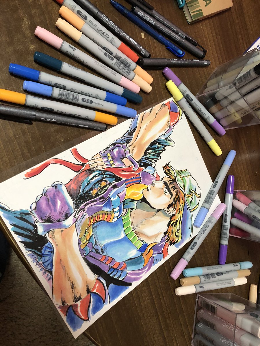 #荒木飛呂彦 先生生誕祭②(6/7) 「#ジョジョの奇妙な冒険」より #ディオ・ブランドー #ジョナサン・ジョースター #カーズ #ジョセフ・ジョースター 数年前のコピックで描いた絵達 デジタルで書き直す時間がなかったので、しばらくアナログの過去絵が続きます😇 #荒木飛呂彦生誕祭2023