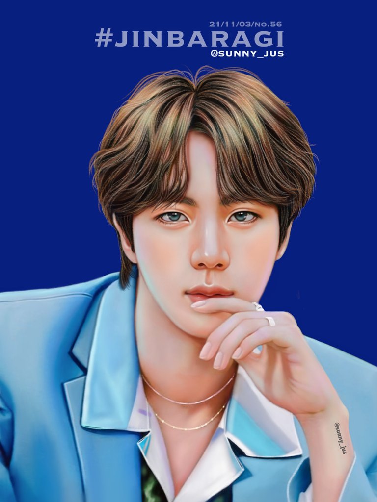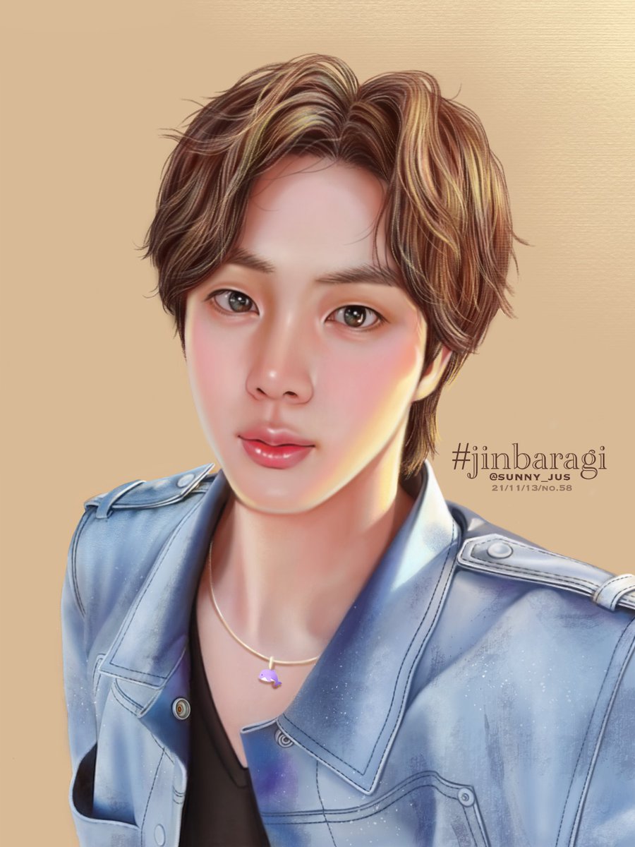 眉毛が凛々しいジンくん🦙 見本にした写真は目のハイライトが入ってなかったけど、入れてみました😌 #色鉛筆画 #絵描きさんと繫がりたい #人物画 #ARMYさんと繋がりたい #btsfanart #いいなと思ったらRT #鉛筆画 #ジンくん