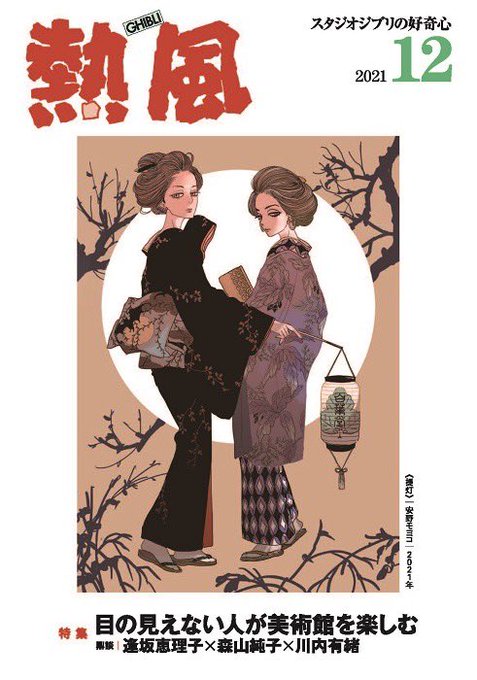 #スタジオジブリ の機関誌「熱風」 12月号、本日発行です❗️ 『提灯』 羽織や着物、帯の図案は 植物や動物などをモチーフに #安野モヨコ がデザインしています。 「熱風」設置書店は こちらからご覧ください! 👉 ghibli.jp/shuppan/np/007… (スタッフ珠)