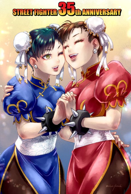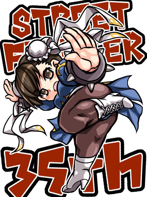 ストリートファイター35周年おめでとうございます!🎊 モチーフは、 ストIIで友人と春麗を同キャラで使いたくて(可愛いから)、隠しコマンドを覚えて入力して何度も失敗してやっと出た赤い色の春麗に感激した思い出です🥹 #ストリートファイター35周年 #SF35th