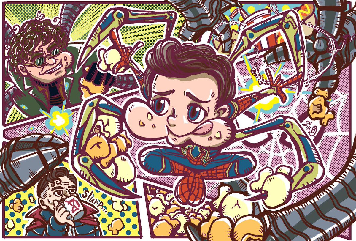 【イラスト】 『マーベルwithポップコーン』 《スパイダーマンvsドクター・オクトパス 》 スパイダーマン ノー・ウェイ・ホーム公開記念イラスト第一弾🍿✨ #spidermannowayhome #nowayhome #スパイダーマンノーウェイホーム #スパイダーマン #spiderman #ドクオク #MARVEL_art_ASSEMBLE