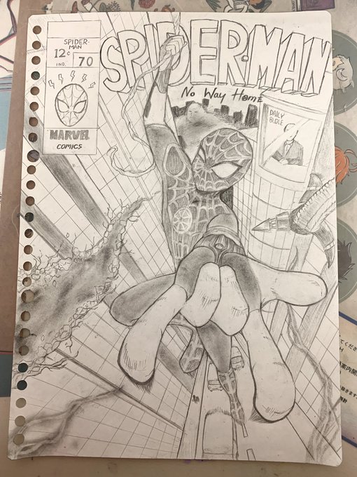授業中に書き進めてたスパイダーマン完成しました! デジタルならもっと伸びる気はするけどなかなか馴れない🥺 #スパイダーマン #スパイダーマンノーウェイホーム #スパイダーマン愛してる #スパイダーマンNWH #アナログ絵描き #サンドマンごめんね #絵描きさんと繋がりたい