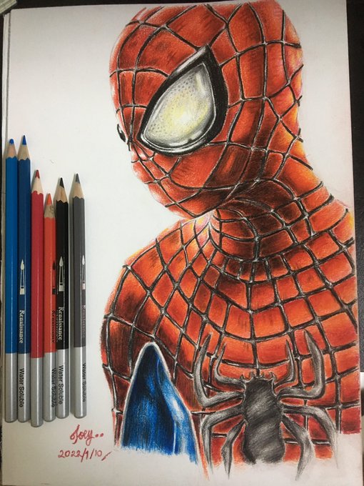 授業中に書き進めてたスパイダーマン完成しました! デジタルならもっと伸びる気はするけどなかなか馴れない🥺 #スパイダーマン #スパイダーマンノーウェイホーム #スパイダーマン愛してる #スパイダーマンNWH #アナログ絵描き #サンドマンごめんね #絵描きさんと繋がりたい