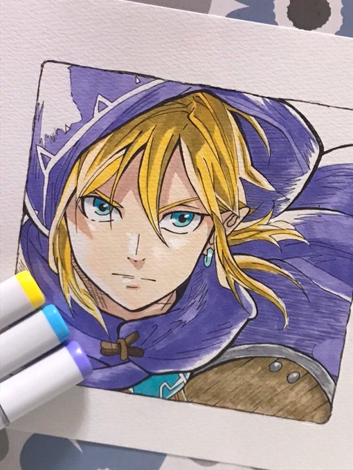 前にリンク描いたー! 色塗りとか元の絵と合わせるのがすごく難しかった… #リンク #ゼルダの伝説 #ゼルダの伝説ブレスオブザワイルド #イラスト #illustration #模写 #アナログ