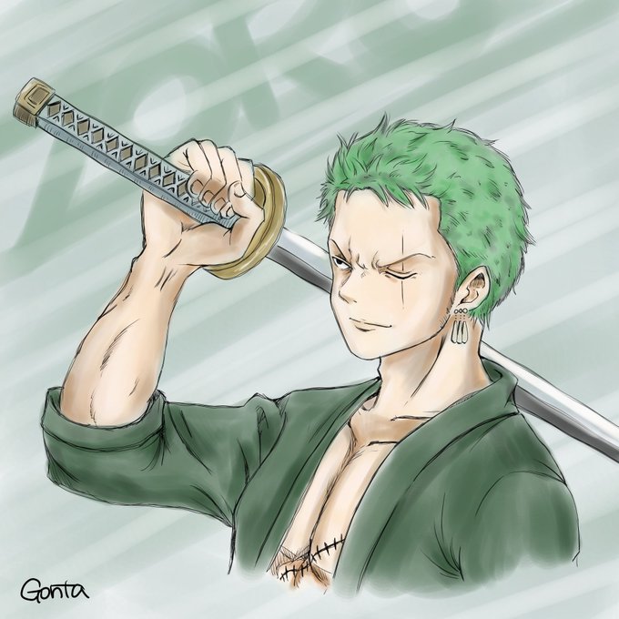 描きかけのゾロのこと忘れてて今ベースの色だけは終わらしたw あとは影とか色々調整したら完成だぜ(๑•̀ㅂ•́)و✧ #ワンピース #イラスト #ゾロ #絵かきさんと繋がりたい #いいねした人全員フォローする