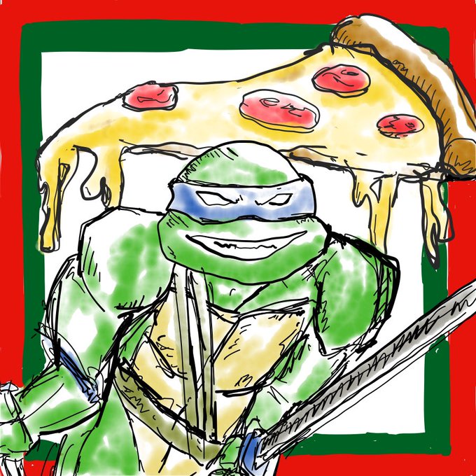 タートルピザはいかが? 描きたくなりました ピザ広告風 #タートルズ #TMNT #TeenageMutantNinjaTurtles #落書き #rkgk #イラスト #illustration #アニメ #anime #絵柄が好みって人にフォローされたい