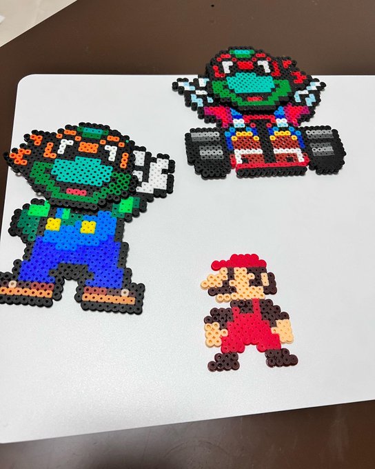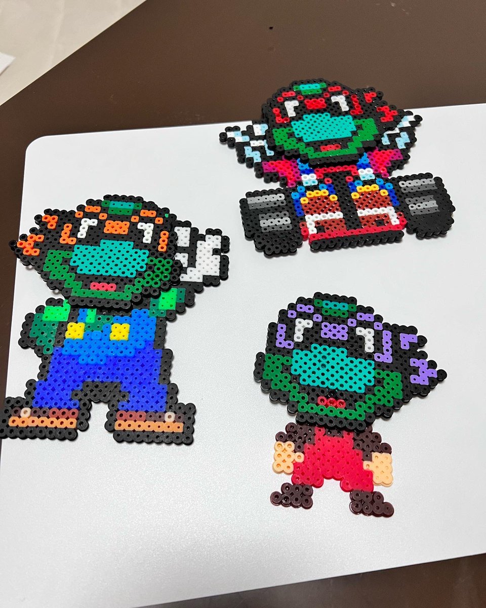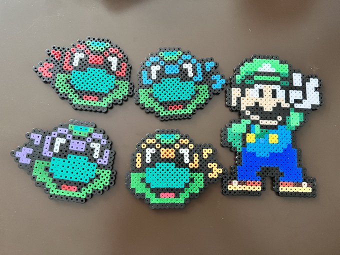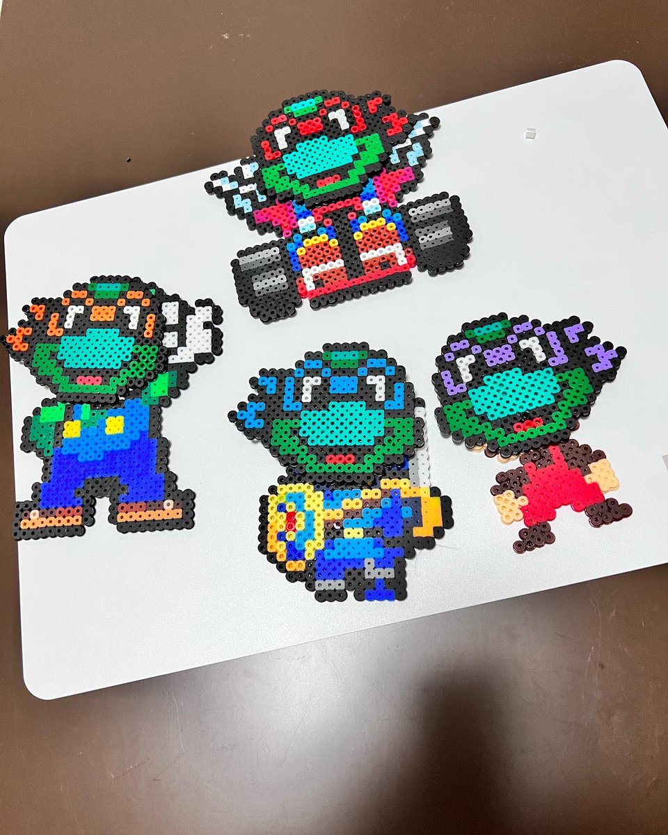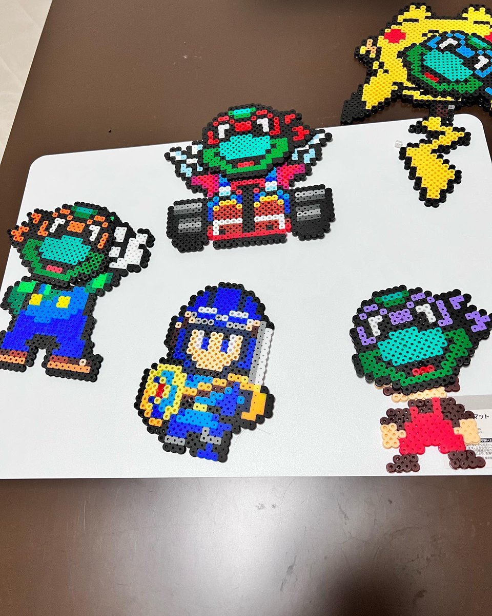 タートルズの頭は何でも合う選手権パート2 チビマリオ、、、合うー🤣 ドラクエ2勇者、、、 違和感なし! 優勝はどれだ😊 #ドット絵 #タートルズ #アイロンビーズ #ドラクエ #マリオ #アイロンビーズアート #アンパンマンの顔 #レトロゲーム野郎作品