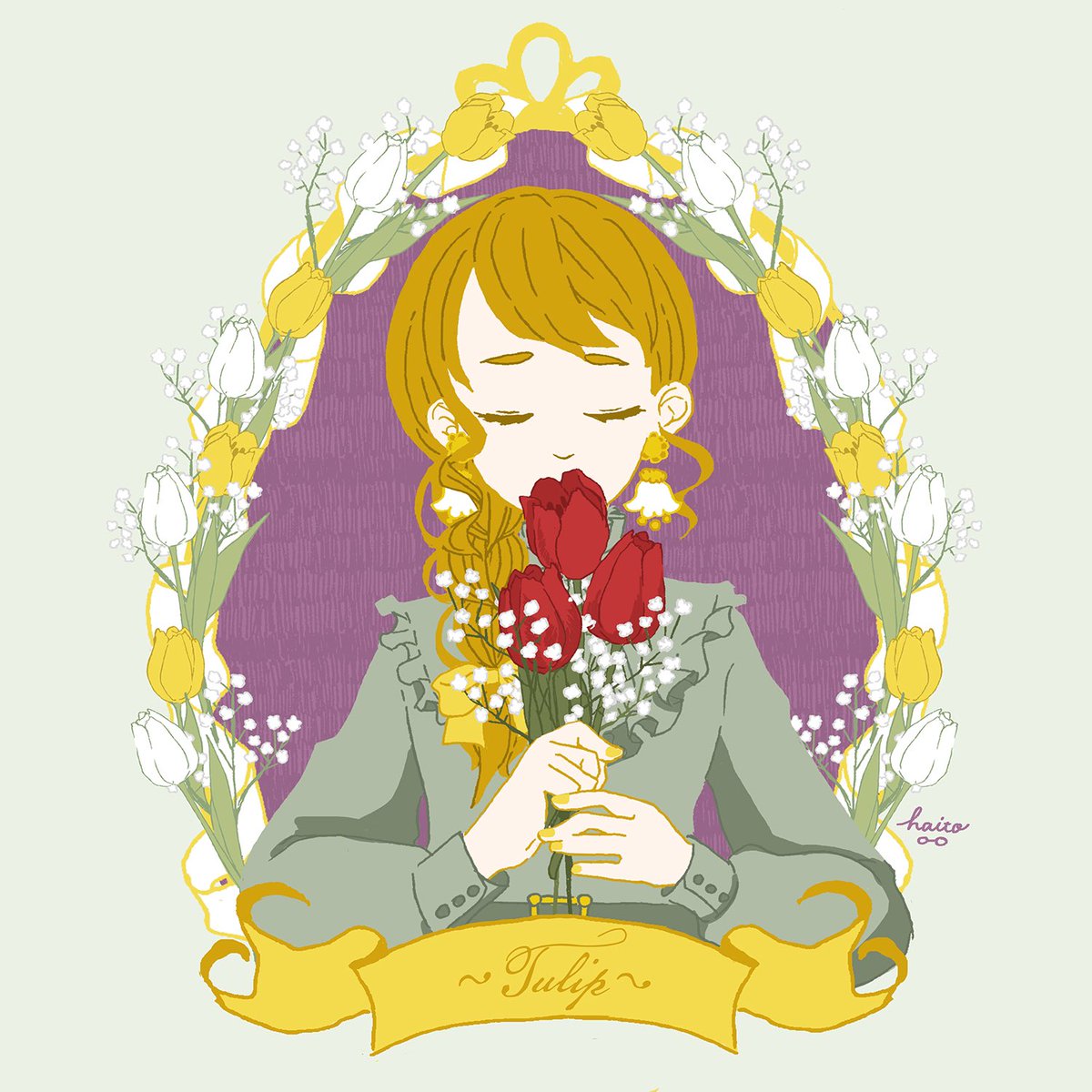 本日1/31は #チューリップを贈る日 だそうです*.🌷.*素敵な日ですね😌 #女の子 #イラスト #デジタル #アナログ #チューリップ #絵描きさんと繋がりたい #絵柄が好みって人と繋がりたい #イラスト好きさんと繋がりたい