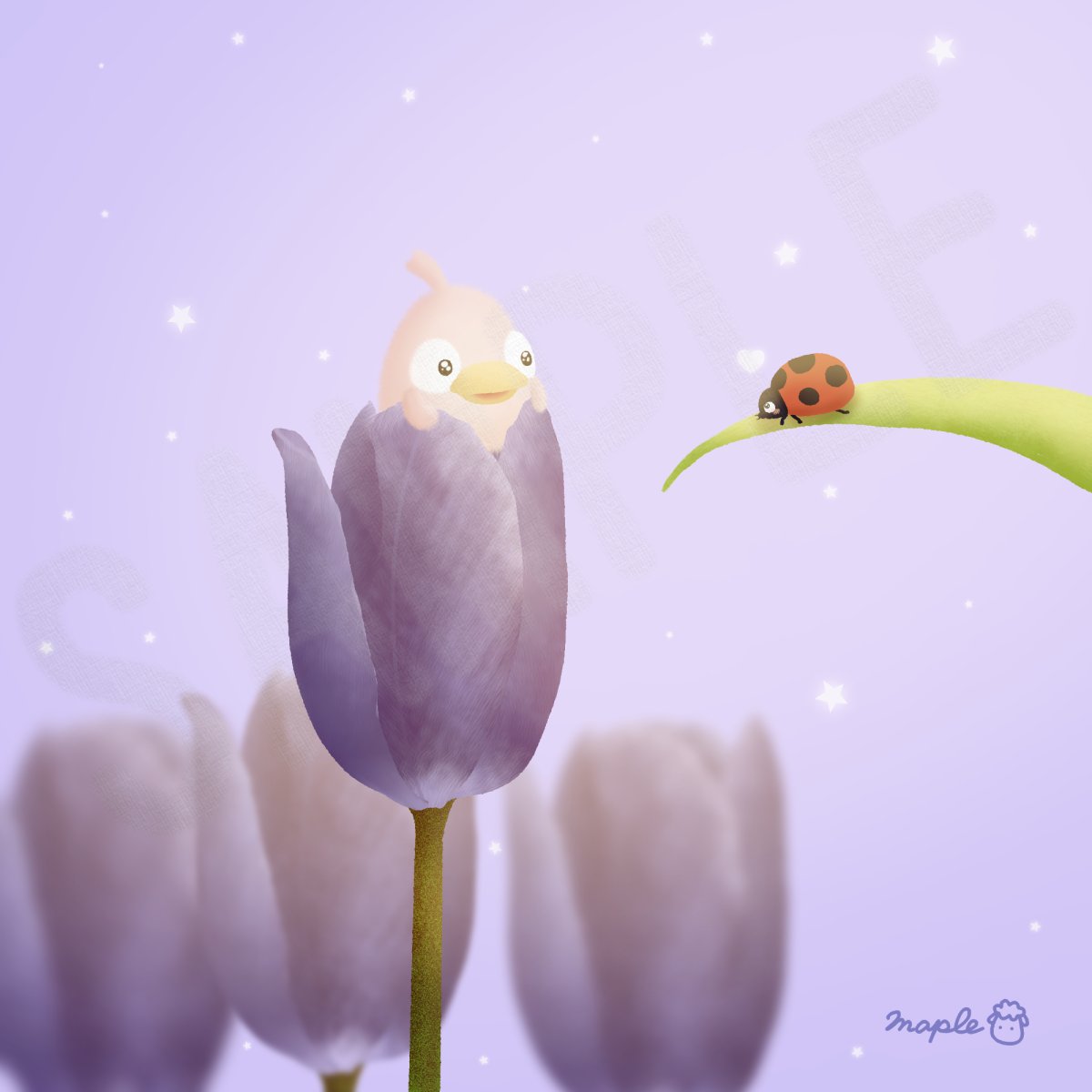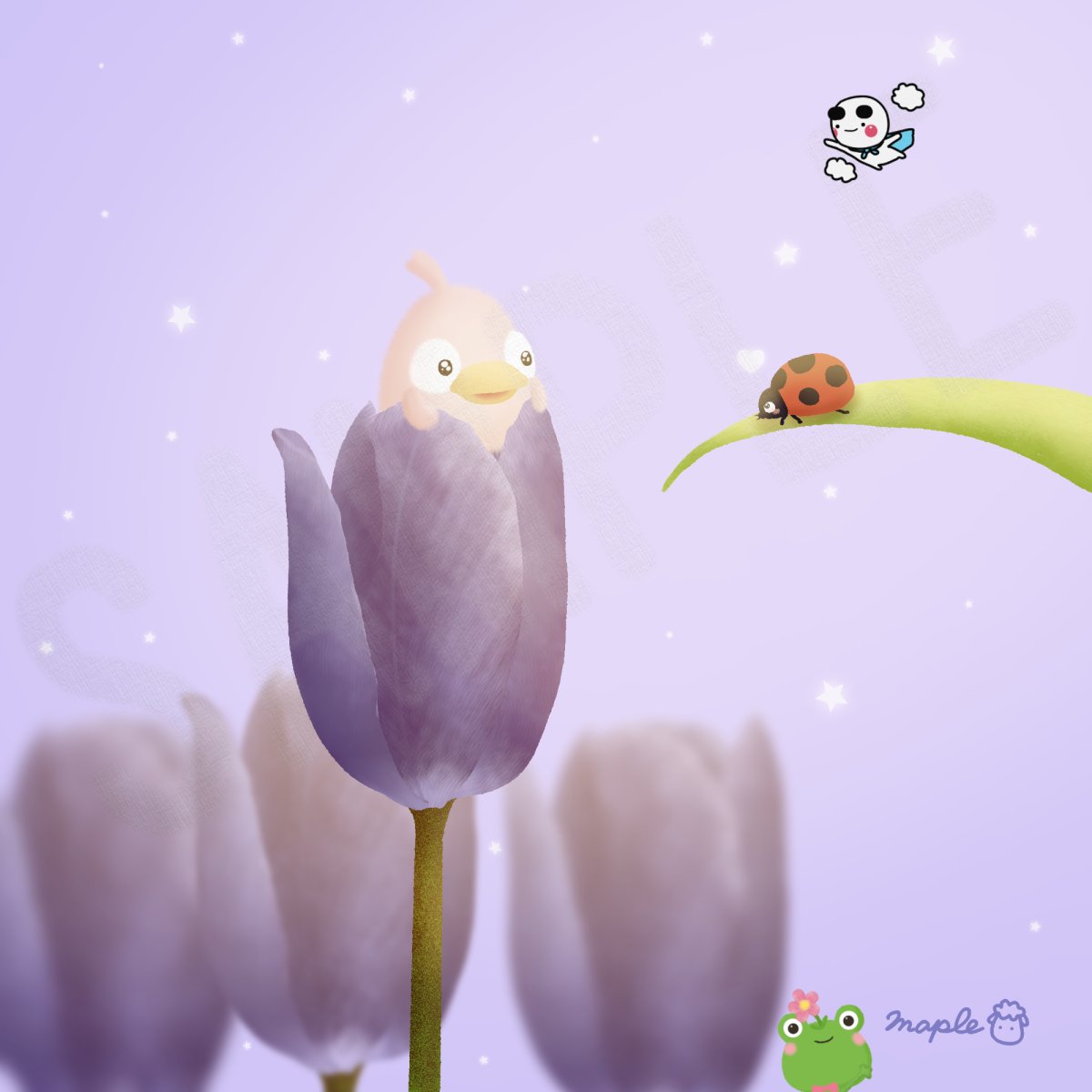 今日は #チューリップを贈る日 だそうです☺️🐥🐱🌷 スピ ッツ「フェイクファー」 大好きな曲です😳💜 #イラスト #digitalart #illustration #OCART #今日は何の日 #illusRT #LINE絵文字 #鳥 #猫 #カエル #うさぎ