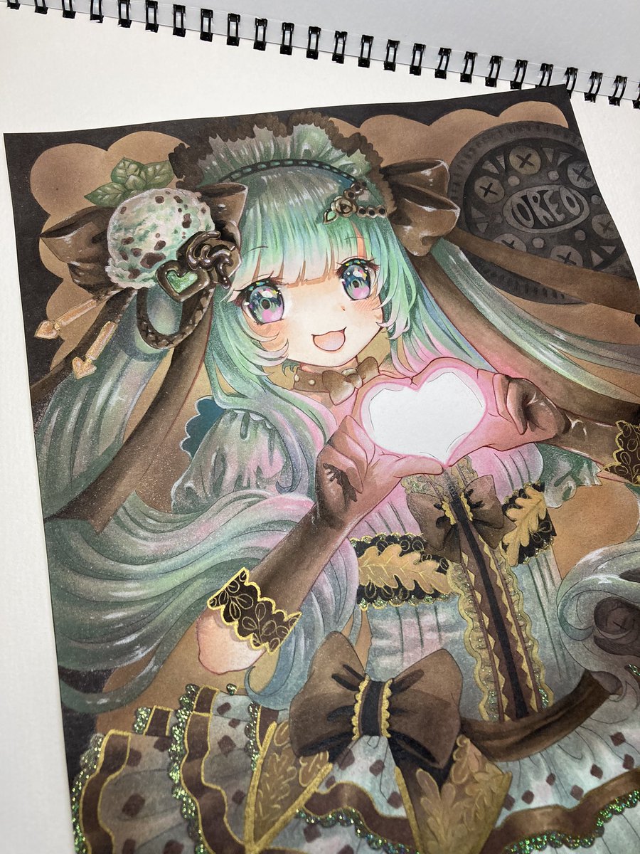 ツイッターアイコンの代理キャラをチョコミントカラーに変えました。先日FF様とアイスの話をして食べたくなりましたのでつい🤤発想のきっかけやヒントって色々な所にあるかと思います🍨 #オリキャライラスト #チョコミント #チョコミン党