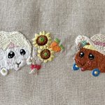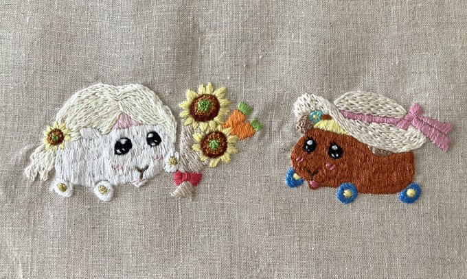 チョコちゃんお誕生日おめでとう🎉🍫🍰👏 チョコちゃんは可愛くておしゃれでかっこいいからどんなお花でも似合うけど、やはり夏生まれなので🌻✨ チョコちゃん、トレジャーモルカー(黄金)を刺繍しました🪡 #チョコ誕生日 #PUIPUIBIRTHDAY #モルカーファンアート