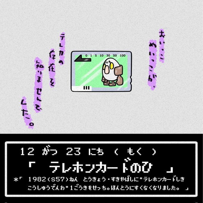 #テレホンカードの日 ☎ 1982年の今日、磁気テレホンカード対応の公衆電話の1号機が設置されました。 公衆電話、最近見なくなったなぁ…😮💭 #今日は何の日 #今日はなんの日 #過去絵 #オリジナルイラスト