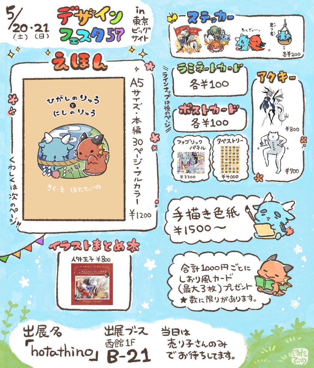 #デザインフェスタ お品書きです。新旧グッズ色々持っていきます🍓🍋💐 🌟#デザインフェスタ57🌟 会 場▷東京ビッグサイト 会 期▷5/20(土)〜5/21(日) 時 間▷11:00〜19:00 ブース▷西1階A-224,A-225 #デザフェス #デザフェス57 #デザフェス57お品書き