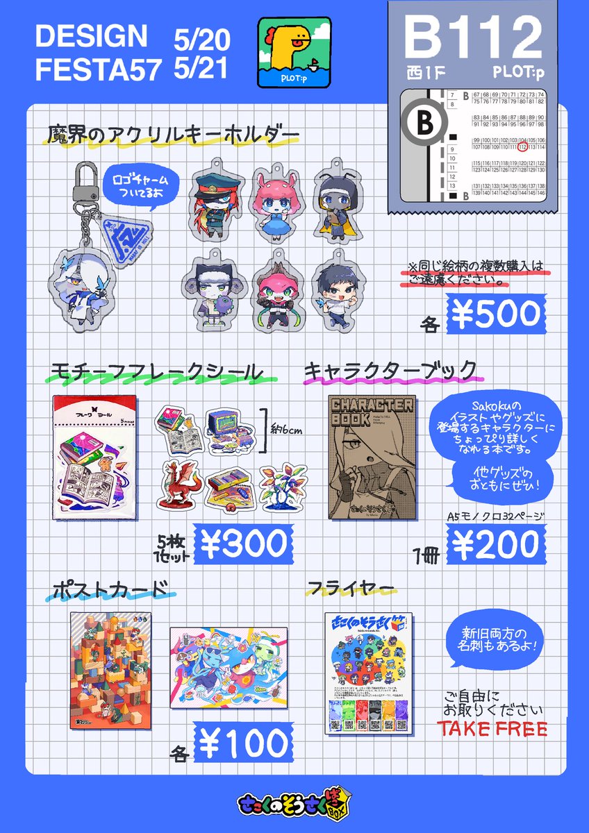 ブース:C-270 出展日:5/20(土) 出展名:tsuchicompass #デザフェス57 #デザフェスお品書き やっつけだけどお品書きできたー!各グッズの詳細や一覧に載せ忘れたグッズはツリーで紹介していくので、そちらもあわせて見てもらえると嬉しいです!