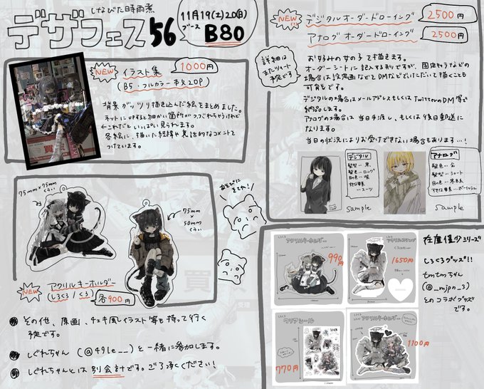 デザフェスのお品書き🐻❄️ 参加日:19・20 ブース名:しなびた時雨煮 ブース番号:B80 初参加でバタバタかと思いますが遊びに来てくださると嬉しいです! 一緒に参加するしぐれちゃん(@49le__ )のお品書きはしぐれちゃんがアップします。 #デザフェス56お品書き #デザフェス56