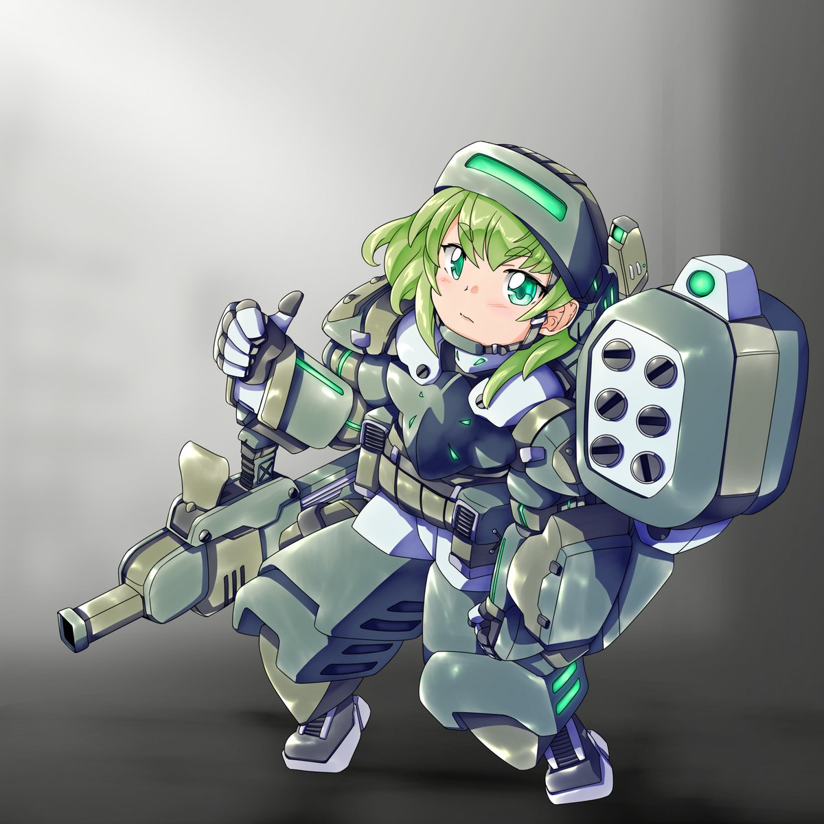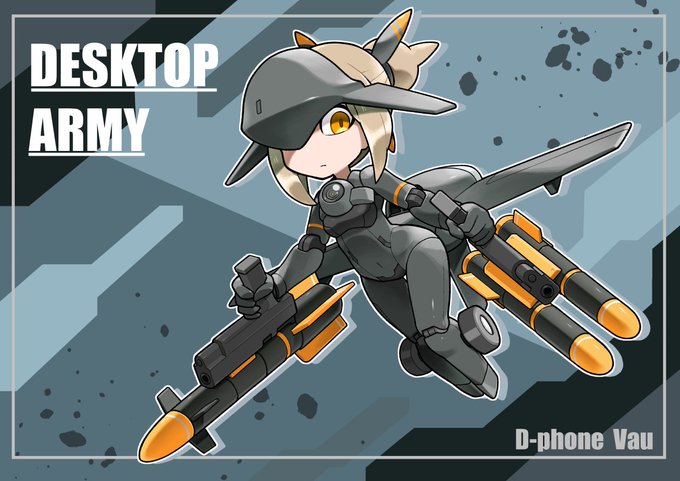 【コンテスト参加】 【応募条件に同意します】 【イラスト部門】 #デスクトップアーミー D-phone名:ミストラル チームとして活動や任務遂行を目的とするD-Phone。様々な武装やパーツ、対大型兵器用パワードアーマーをも所持しており戦況に応じて兵装を変えつつ任務遂行する。