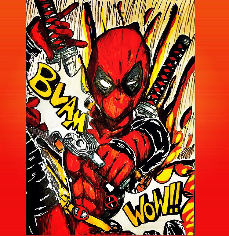 #フォロワーさんの推しが描きたい @kabaneMCU さん ありがとうございました☺️ 最後!! デッドプールです♡ 少し可愛らしくなってしまったでしょうか…🤔 #絵描きさんとつながりたい #絵が好きな人と繋がりたい #アナログ絵描きさんと繋がりたい #Deadpool #デッドプール