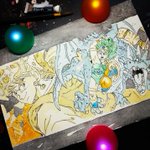 労働疲れによる寝落ちに何度も見舞われながら、らくがき帳なんかにモノクロで描き始めてしまった事を後悔しつつ進めてた絵がようやく完成した…… パソコンしんでてスキャナも使えないのでとりあえずスマホの写真で失礼しやす゚~φ(:Dノ∠)_ #ドラゴンクエスト4 #ドラクエ4 #DQ4 #DragonQuest4