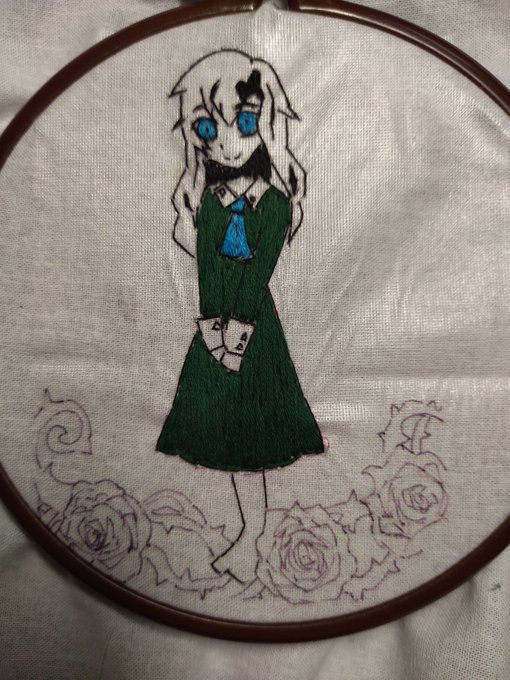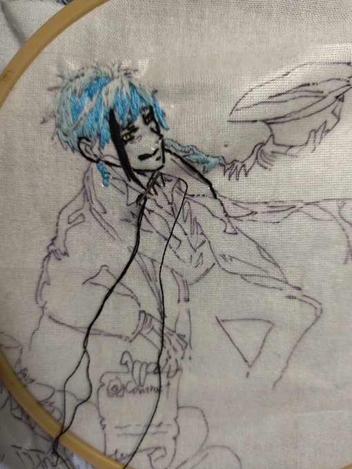 めっちゃ亀更新だけど縫った。お顔だけはフルで縫えたなぁ… #進捗状況 #絵の世界 #フロイド・リーチ #オクタヴィネル #ツイステファンアート #絵描きさんと繋がりたい #刺繍 #ニ次創作 #イラストカクサン #ナックの刺繍絵 #アトリエの系譜plus