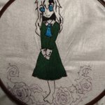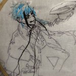 J『おやおや、針が全く進まないまるでノロマな亀ですねぇ。』……ほんっとすんません。 #絵の世界 #手縫い刺繍 #ジェイド・リーチ #ツイステファンアート #刺繍 #絵描きさんと繋がりたい #ナックの刺繍絵 #ニ次創作 #イラストカクサン #進捗状況 #アトリエの系譜plus