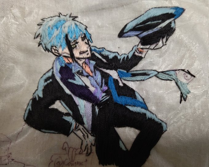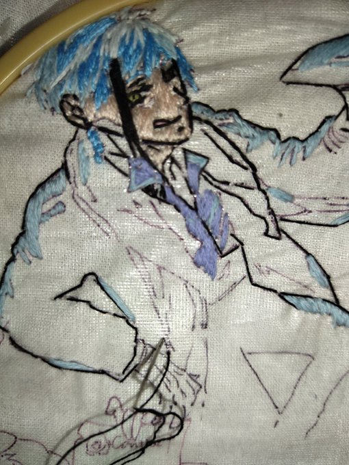 鬼滅見ながらフロイドようやく完成! #絵の世界 #刺繍 #ツイステ #進捗状況 #おえかき世界 #絵描きさんと繋がりたい #ナックの刺繍絵 #ニ次創作 #イラストカクサン #ツイステファンアート #アトリエの系譜plus #オクタヴィネル #フロイド・リーチ