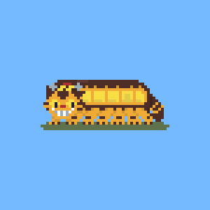 今日8月19日の #金曜ロードショー は『#となりのトトロ』が放送されるってことなので、ろりめるさん(@rorimel_s2)に #ネコバス 😸🚎モチーフのワンピースを着て貰いましたおぅん! いや、こんなの作れないでしょうけど。 #365日365ろりめるドット絵 #66/365 #ドット絵 #pixelart #スタジオジブリ非公認