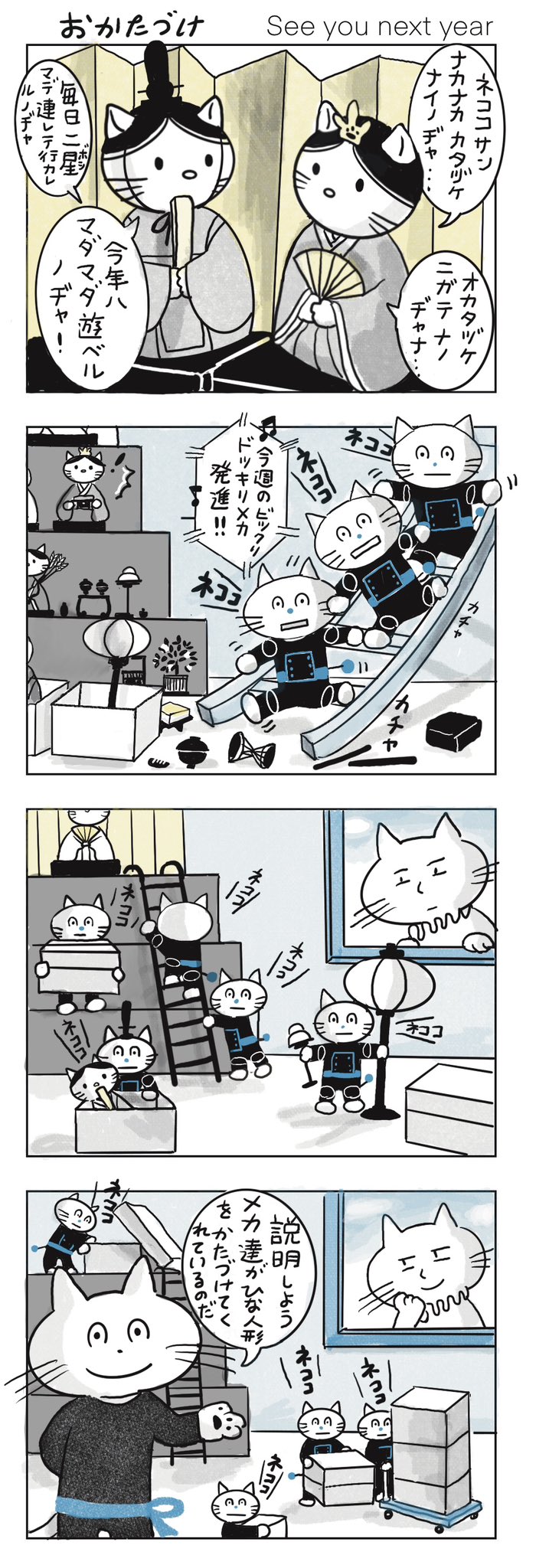 ねここの家のおひなさまはまだ出ていますよ と。 #4コマ漫画 #マンガが読めるハッシュタグ #ネコマンガ #みんなdeポジティブ人間化 #みんなで楽しむTwitter展覧会 #ひな祭り #雛祭り #ひなまつり #かたづけられにゃい