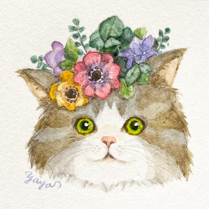 #猫絵 🐈🖼新作です “Pure Princess”(ケント紙にアクリル絵具、28×19cm) モデルは #ノルウェージャンフォレストキャット の女の子😻微妙な色合いですが実物は画像より淡い感じ🎨清楚なプリンセスのイメージです😅 #絵描きさんと繋がりたい #猫好きさんと繋がりたい #アナログ絵 #アクリル画