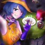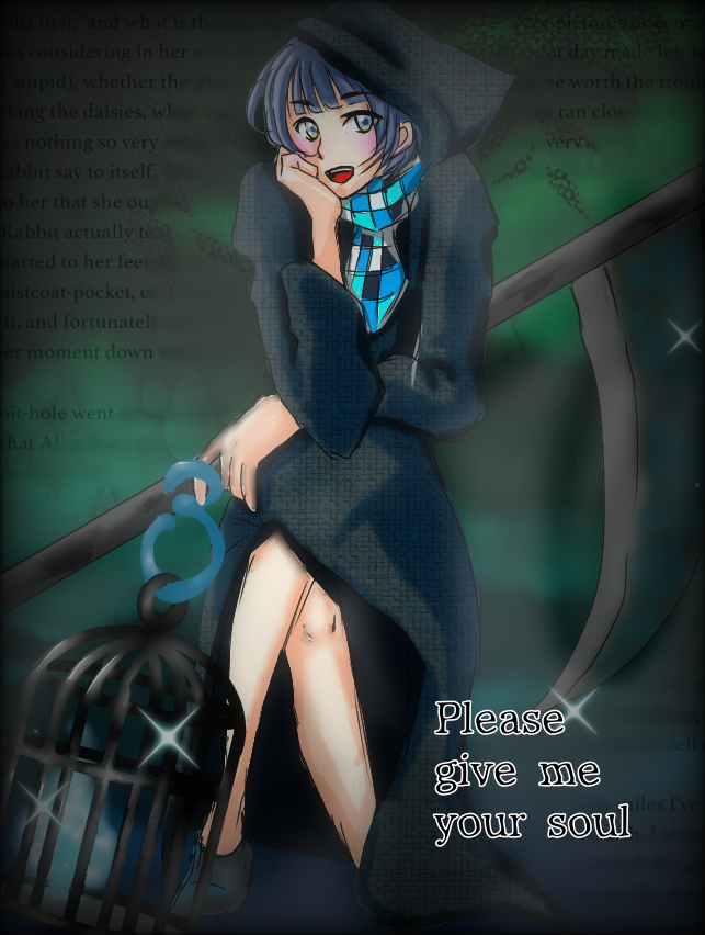 『地下室のインペリアルドラゴン』サントリーブランデー「インペリアル」でスナップドラゴンゲーム[en.wikipedia.org/wiki/Snap-drag…]に興じて自撮りする、はろうぃん仮装した燦鳥ノムさん。 #燦鳥ノム #ノムart #ハロウィンノムart