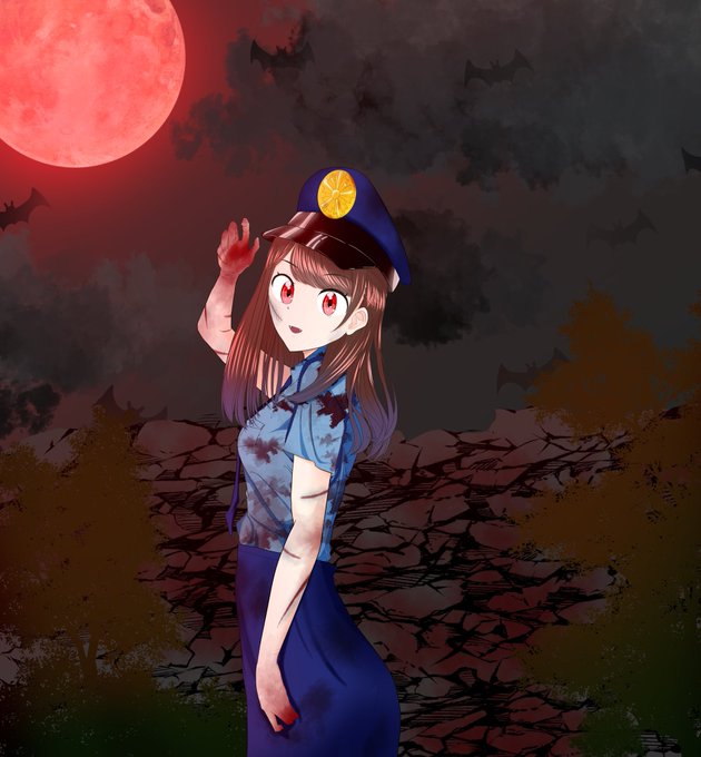 ハッピーハロウィン!🎃 遅れたスタートダッシュですけどw メンヘラ女警官 #デジタルイラスト #ハロウィンイラスト2021 #ハロウィン仮装 #イラスト #クリップスタジオ #イラスト好きな人と繋がりたい #漫画家志望