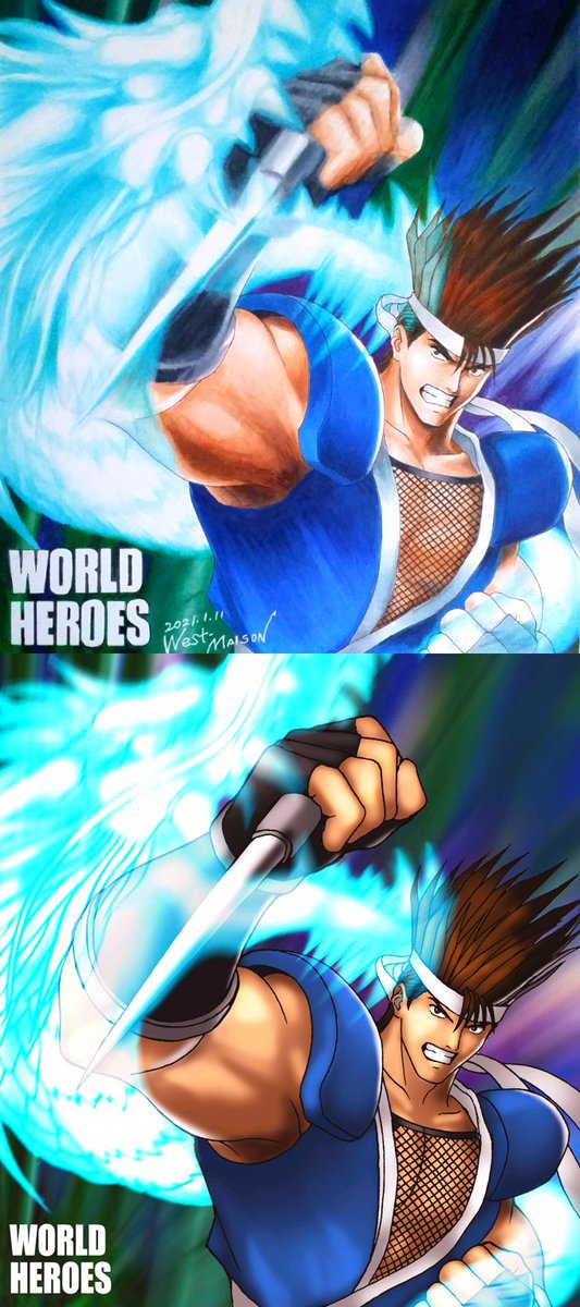 過去絵ですが、今日が誕生日のワーヒーのハンゾウをば。 サムスピチームが参戦したなら、彼も在籍するワーヒーチームもKOFに参戦して欲しいところですねー…。#ハンゾウ生誕祭 #ワールドヒーローズ #WORLDHEROES #SNK #格ゲーキャラ描こうぜ