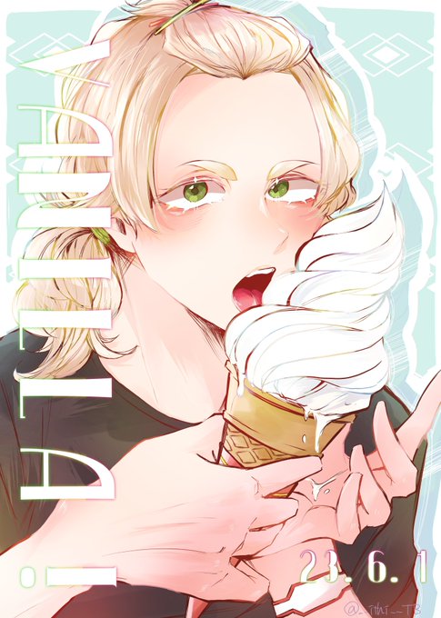 #バニラ記念日2023 間違って消してしまった💦ファボしてくださった方、すみませーん🙏🏻💦 再掲させてもらいます! 何となくツンバニラ風味 🐰ほんとは貴方の食べかけが食べたいんですけどねブツブツブツ←残バニラ