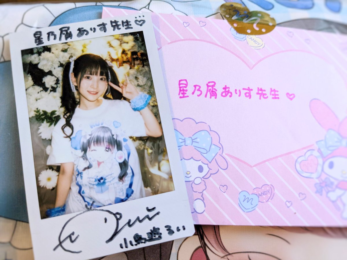 小鳥遊るいちゃんより🤍 生誕祭のTシャツとかわいいかわいいチェキと🤍お手紙頂きました!お忙しいのに本当にありがとうございました🤍宝物です✨ るいちゃんは内面も素敵なコで推せます☺️🎀 #ババババンビ #小鳥遊るい生誕祭2022