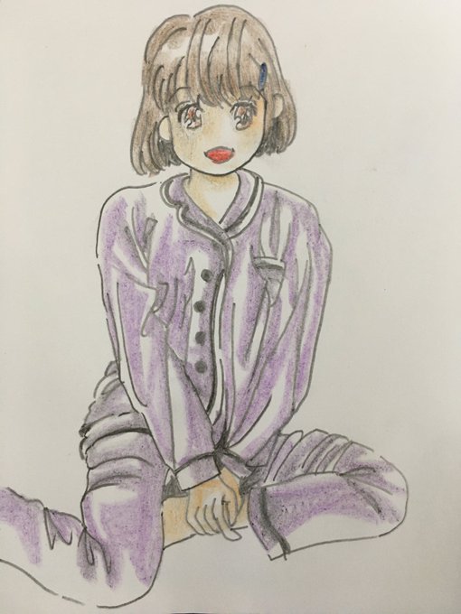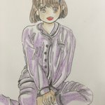 線画「パジャマパーティーに鉢合わせたルカ」 前作「ハンナ&由布子 パジャマパーティー」の続き 由布子さんち(ルカのホームステイ先)でパジャマパーティーなら鉢合わせは当然でしょうな… #線画 #イラスト #パジャマ #パジャマパーティー #鉢合わせ #illustration #pyjama #pyjamaparty