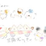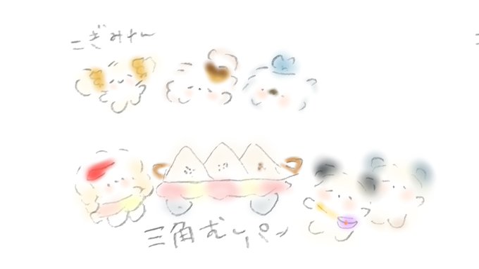 Hello💙バナバニー🍌🐰フレンズ 今日は早めの投稿です。 ←こぎみゅん こなミミィ→ 「マルシェのパン屋さん」 レトロな三角蒸しパン△ #絵描きさんと繋がりたい #サンリオ推しキャラ #こぎみゅん #パン屋