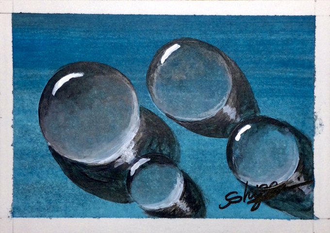 〜ビー玉〜 今朝はアクリル絵の具を使って、ビー玉を描いてみました。透明感のある涼しげな仕上がりを意識して、描いてみました。 #アクリル画 #静物画 #ビー玉 #絵を描いている人と繋がりたい #絵が好きな人と繋がりたい
