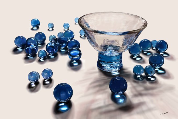 ビー玉とおちょこ描きました🍶 やっとやっと完成✨ε-(´∀`; ) 頑張ったので沢山の方に見て欲しいです \(๑˃̵ᴗ˂̵)/❤︎ #絵描きさんと繋がりたい #イラスト #ビー玉 #art #作品展示会 #みんなで楽しむTwitter展覧会
