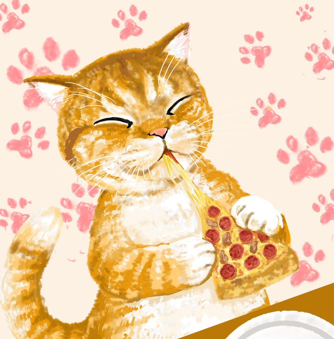猫のミケランジェロ 過去絵がまたあったのでのせておきます(*´▽`*) #猫のミケランジェロ #過去絵を投げて絵を描いた気になろうキャンペーン #柴犬 #ピザ #イラスト好きと繋がりたい #絵描き #猫