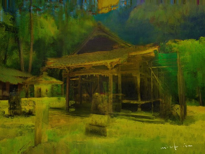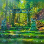 Green Shrine(1枚目油彩画) ジブリの映画に出てきそうな 緑いっぱいの神社に行きました☺ #神社 #ジブリ #画廊 #油絵 #日本 #キリトリセカイ #月刊美術 #那珂川 #イラスト好きな人と繋がりたい #ツイッターで楽しむ展覧会 #JAPAN #ファインダー越しの私の世界 #いいねで気になった人フォローする
