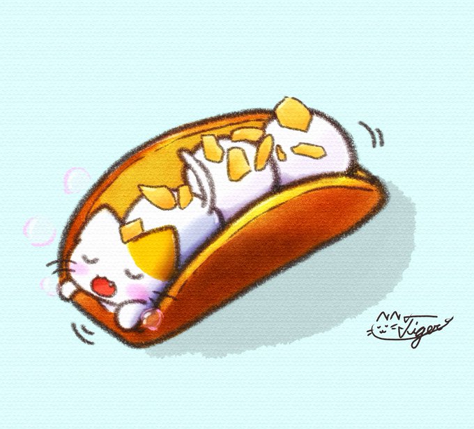 オムレットねこ🐈~甘い生地に包まれて~🐈 #ねこ #イラスト #illustration #絵描きさんと繋がりたい #イラスト好きさんと繋がりたい #絵柄が好みって人にフォローされたい #冬の創作クラスタフォロー祭り #ファミマ