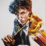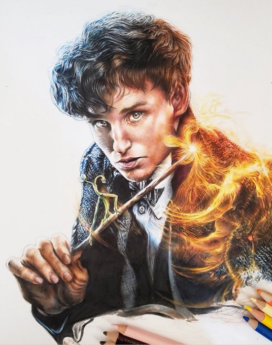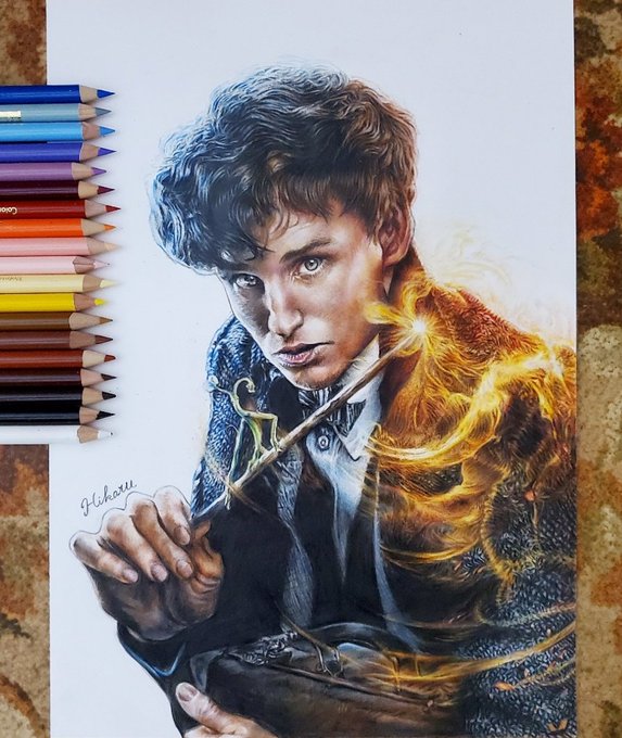 迷子になってます 杖の光の不規則な形と濃淡で どこを描いているのかすぐ分からなくなる😅 #お絵描き #色鉛筆画 #ファンタスティックビースト #エディレッドメイン #絵描きさんと繫がりたい