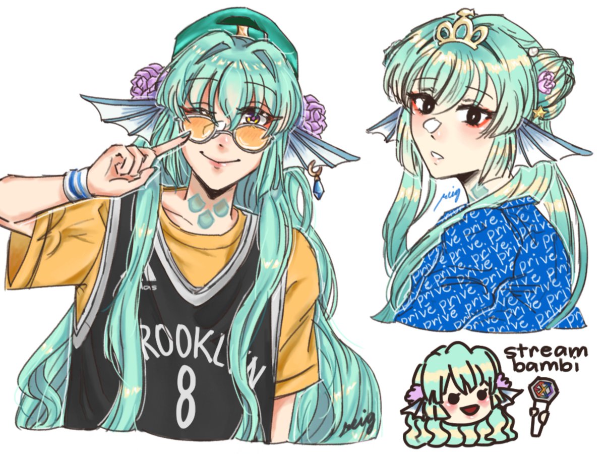 eri feesh wearing baekhyun's "the one" fit and a blue privé windbreaker also designed by him 👀💚💙 #Finanart #FinanaRyugu #フィナーナ竜宮
