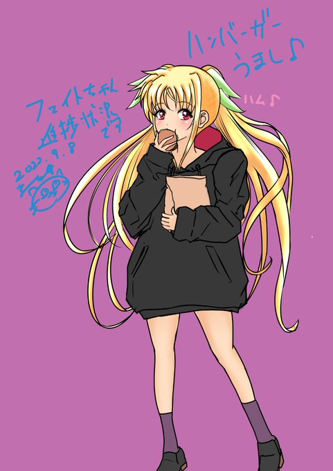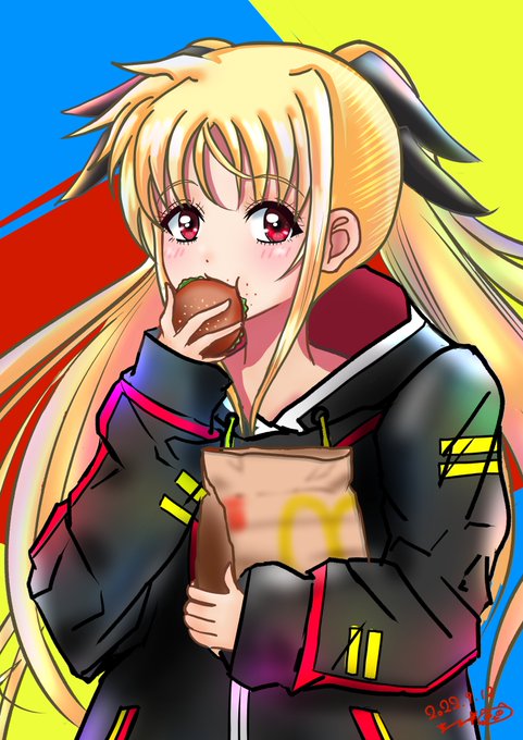 先日より描いておりますフェイトちゃんの進捗状況です🐱 えと…ハンバーガー食べてます🐱🍔💕 きっとお腹が空いているのでしょう🐱 引き続き描いていきま~す🐱 #nanoha #リリカルなのは #なのは #フェイトテスタロッサ #イラスト twitter.com/fth0529/stat…