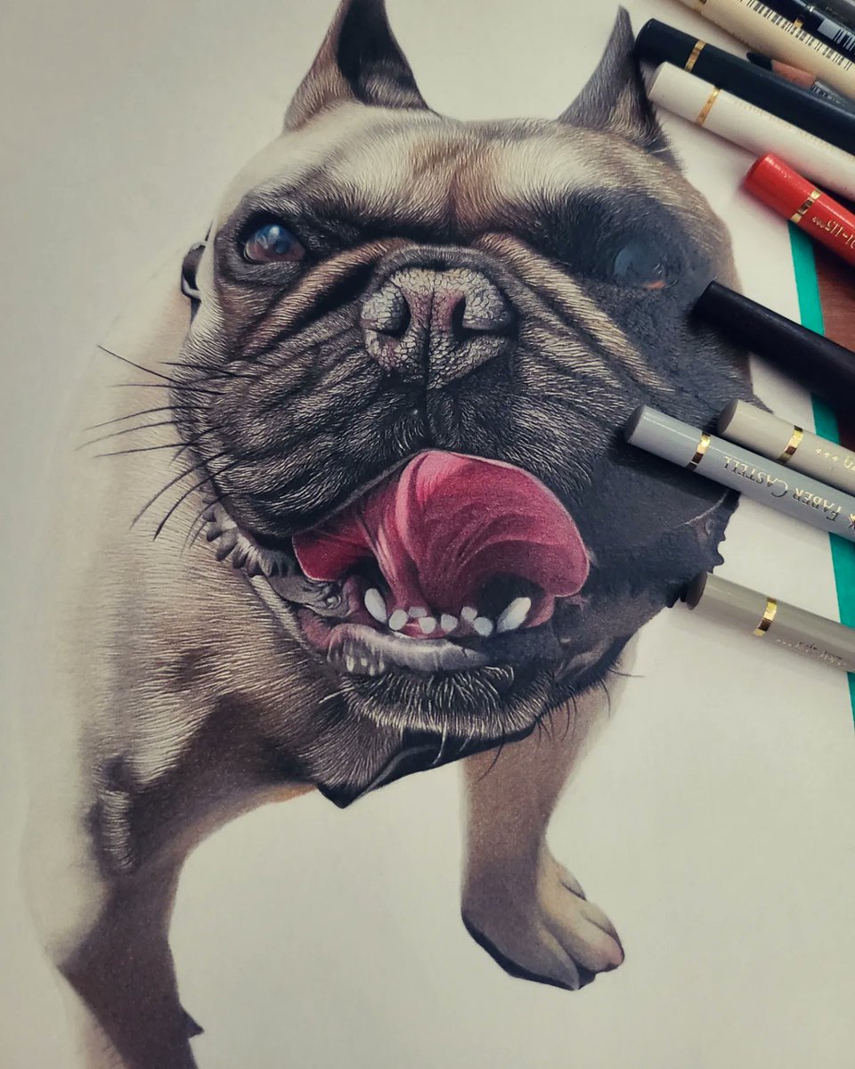 #色鉛筆画 オーダー途中経過✏️ #フレブル #フレンチブルドック #絵描きさんと繫がりたい ⭐9月の予定は💡 色鉛筆画と✏️ ドール着物👘(巫女服)(羽織は時間あれば)製作予定でおります😌 #羊毛ちくちく #羊毛ちくちくheartleaf