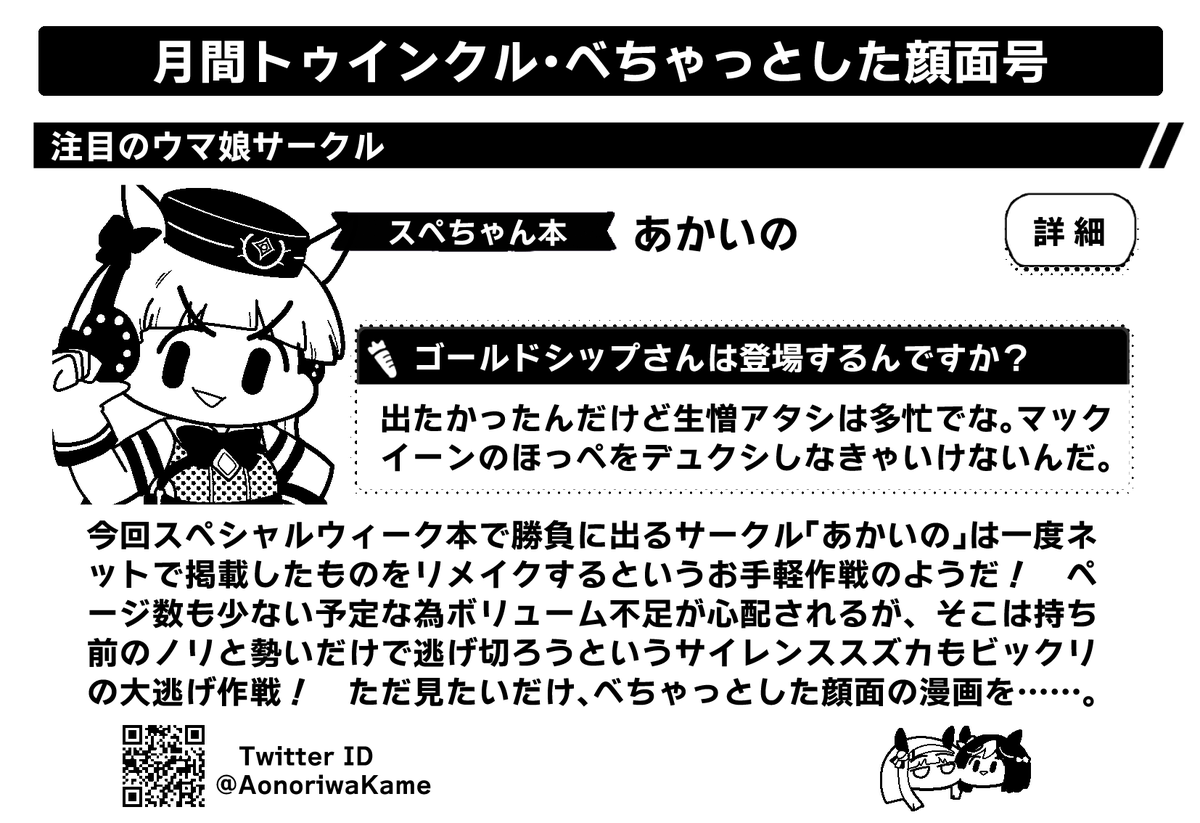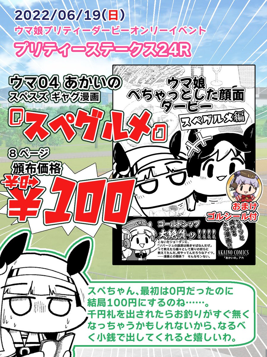 続きです。今週末6/19(日)開催のプリティーステークス24Rで新刊のウマ娘本を「娘04 哀れなウサギ」のスペースで委託頒布してもらいます! ストーリーは蒼葉叶音さんで、漫画を直晴が描きました 🍈melonbooks.co.jp/detail/detail.… 🐯ecs.toranoana.jp/tora/ec/item/0… #ウマ娘 #ウマ娘プリティーダービー #プリステ24R